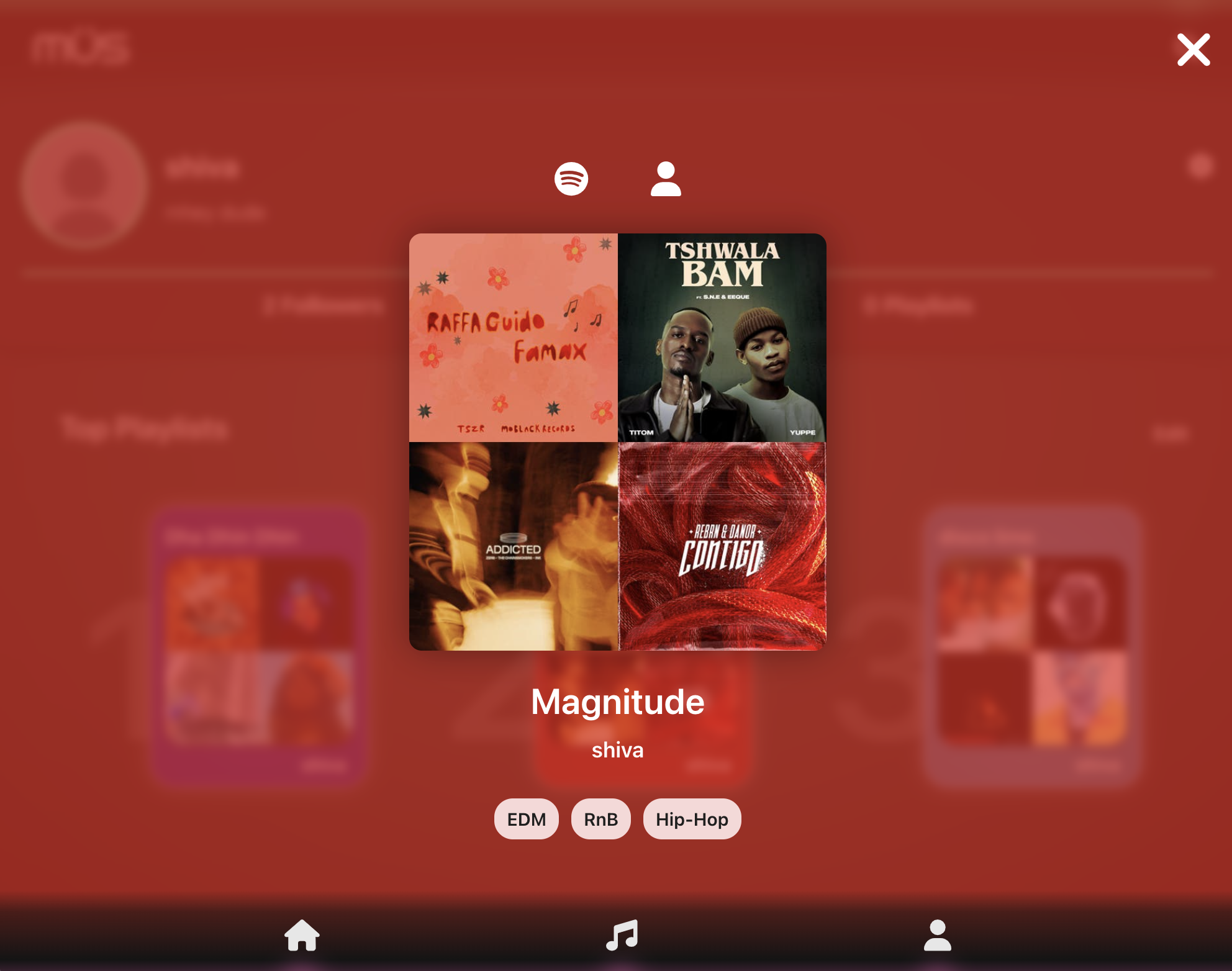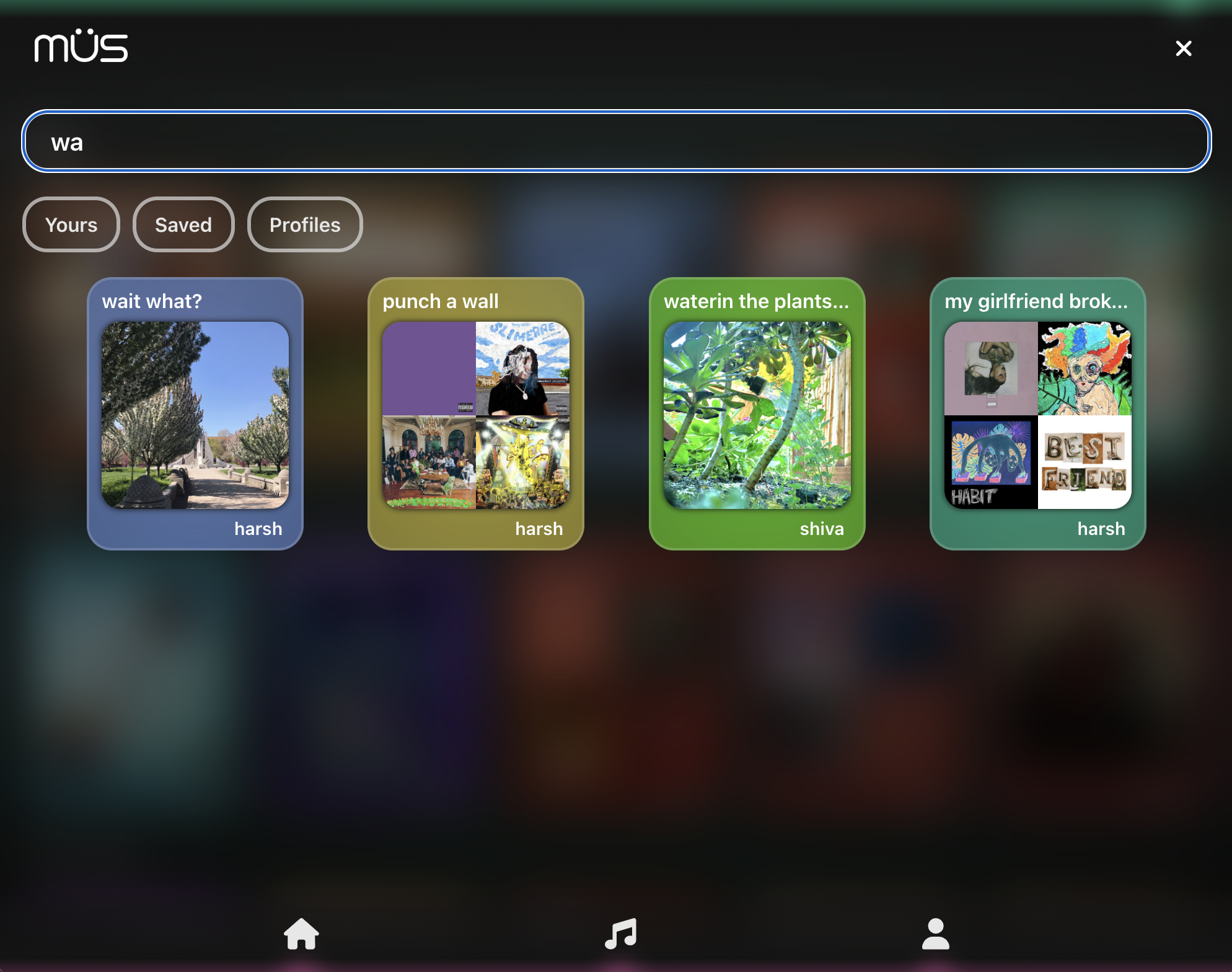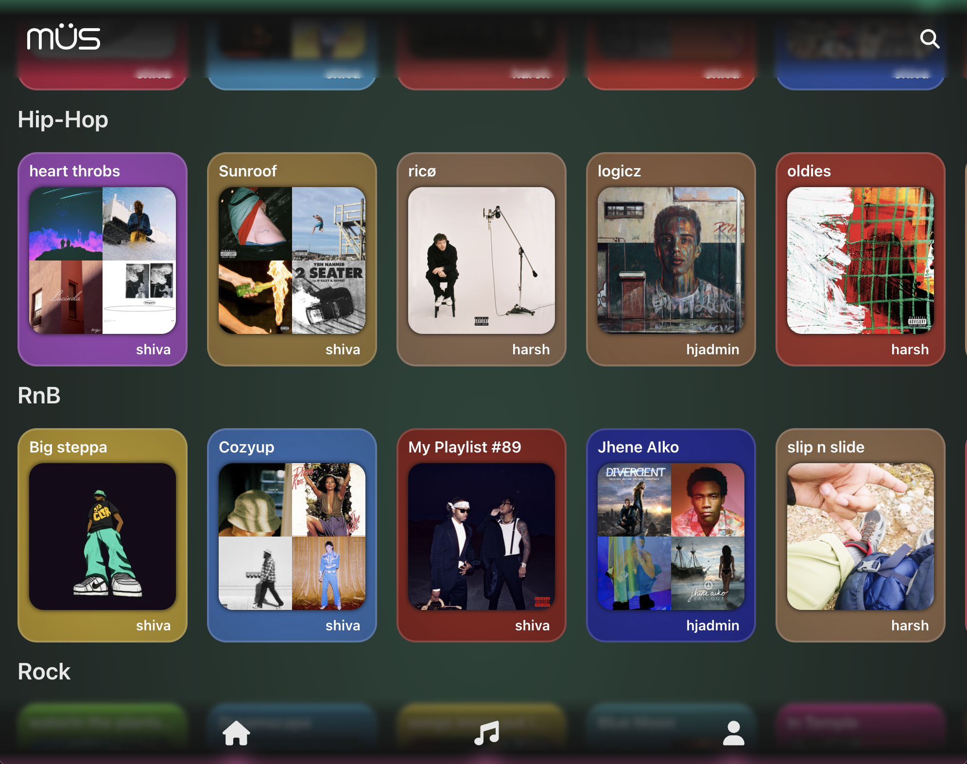 Müs is a music playlist discovery platform that I am currently developing. It allows users to connect their Spotify playlists and publish them for the world to access. Using many recommendation factors, the app displays a range of playlists to tailor to the user's interests. I develop the frontend of the application as well as design the user experience and brand aesthetic.