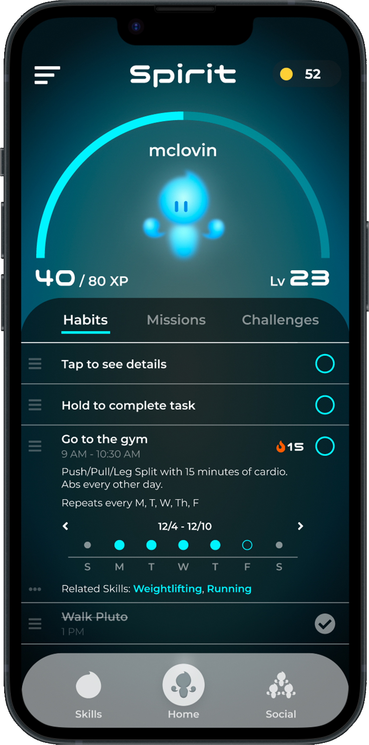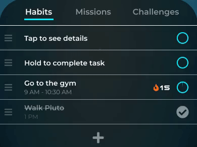 - This is ultimately the responsibility of the user, but creating a space where they can write down their goals in terms of actionable tasks is the first step towards building habits.
